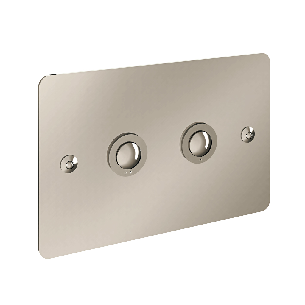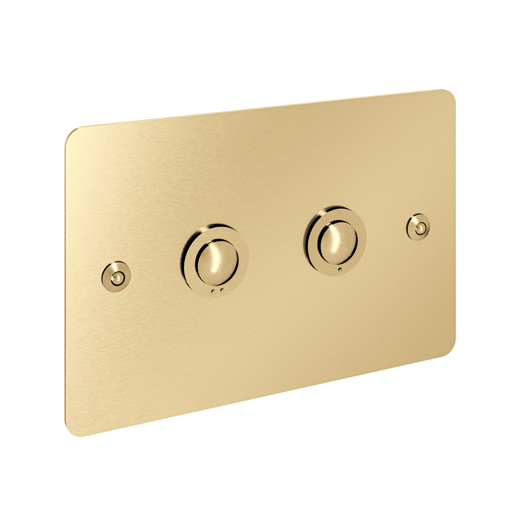 Cette plaque présente un design polyvalent adapté aux intérieurs contemporains, rétro ou classiques. Sa conception intègre deux caches usinés avec précision, chaque bouton étant entouré d’une bague fonctionnelle indiquant le débit.